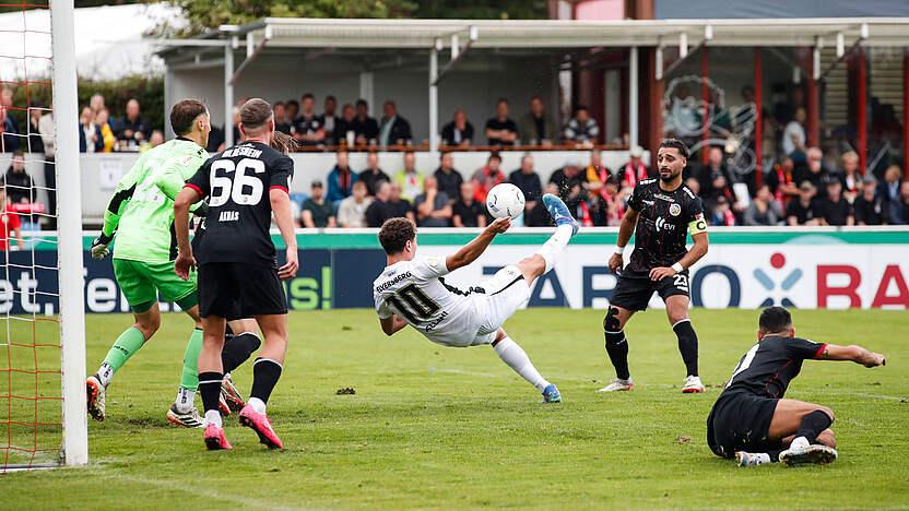 Bei der ersten DFB-Pokal-Teilnahme seit 47 Jahren ist der VfV Borussia 06 Hildesheim in der ersten Runde ausgeschieden. Gegen den Zweitligisten SV 07 Elversberg kassierte Hildesheim ein 0:7. - FUSSBALL.DE